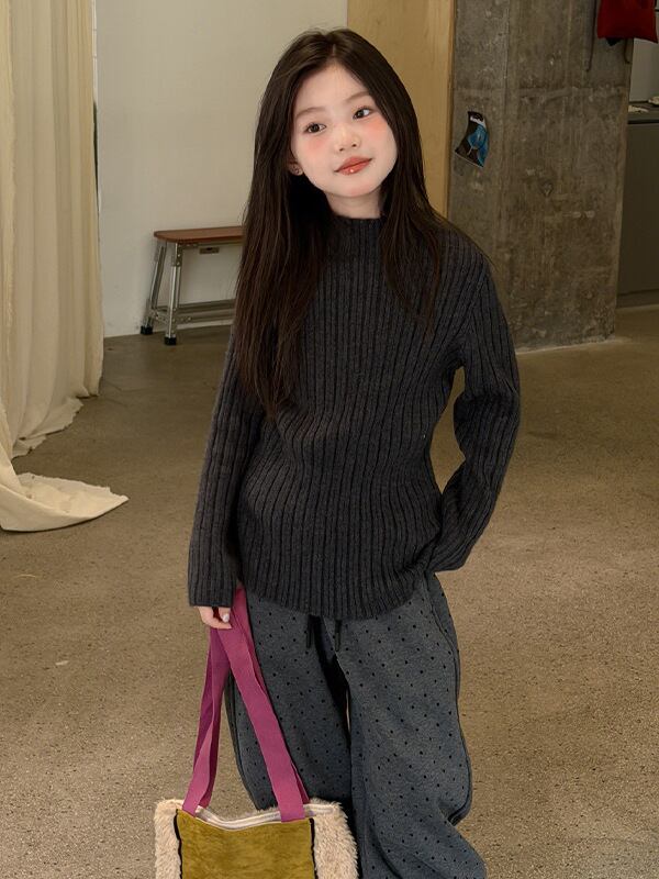 女の子 ニットセーター リブ編み ハイネック 長袖 小学生 中高学年 120〜170cm 2025・2026AW 秋冬新作 あったか厚手ニットトップス