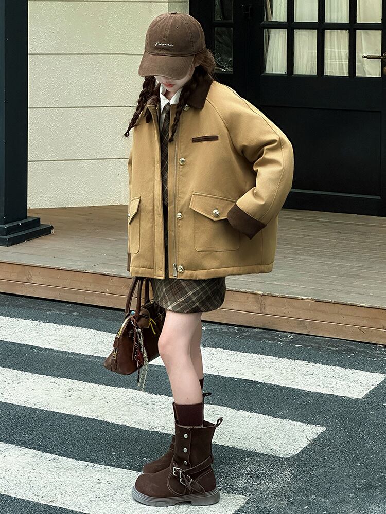 女の子 冬アウター 厚手ジャケット カーキ 大人かわいいシンプルコート 小学生高学年 中学生 通学・お出かけにぴったり 2025・2026AW