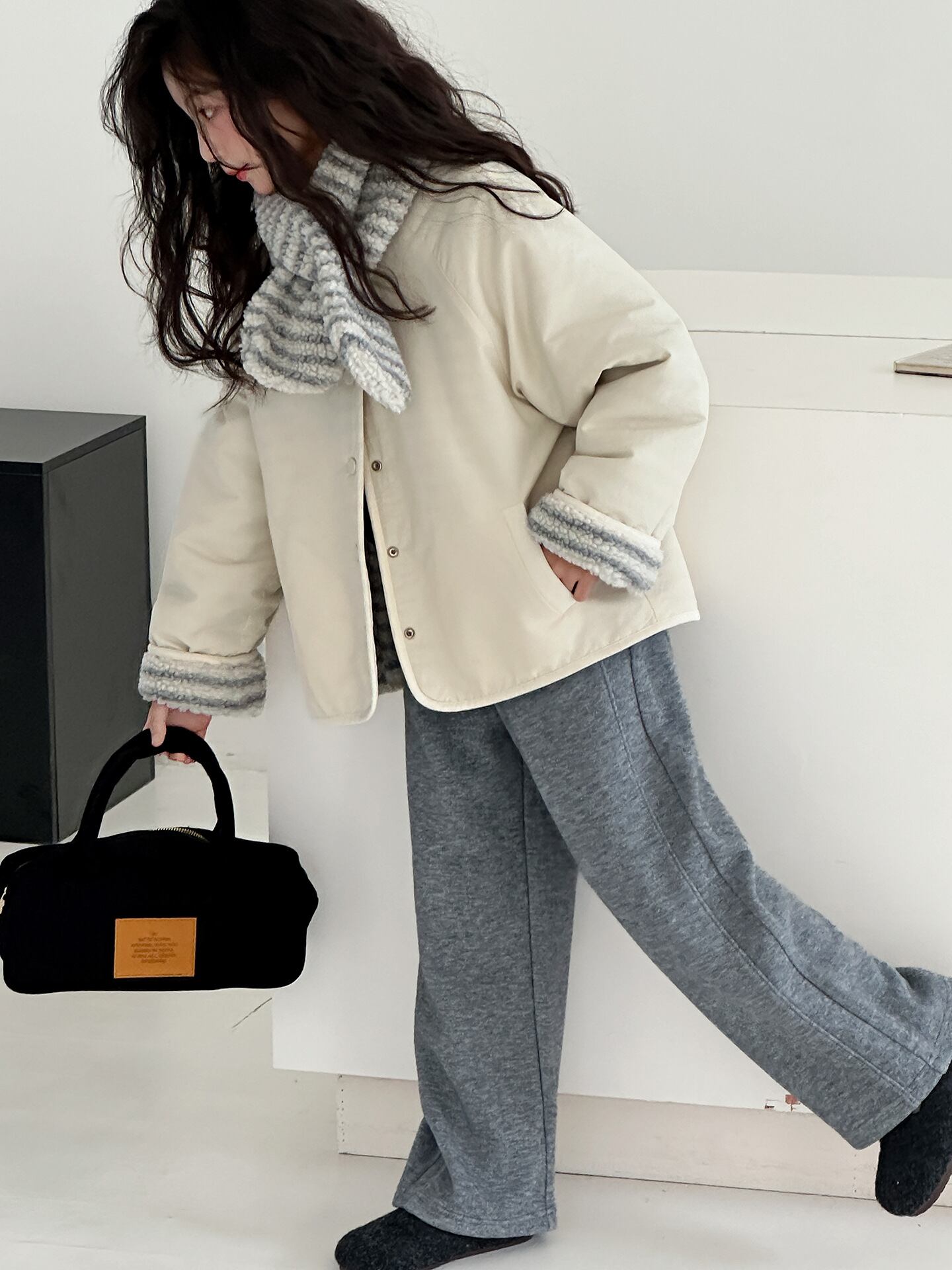 このジャケットのいちばんの嬉しいポイントは、リバーシブルで着られること。シープボアのもこもこ面はガーリーに、反対側はシンプルで大人っぽく、その日の気分で2WAYコーデが楽しめます。1枚で2枚分の可愛さが手に入り、スタイルの幅がぐっと広がる優秀アウターです。